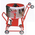 ステンレスタイプのミキサーは、丈夫で長持ちするのが特徴です。シンプル設計で洗いやすく、いつも清潔に保てます。また、ドラム上部にはカサ上げ(ツバ)が装備されていますので、モルタル混練時のこぼれを防ぎスムーズに作業できます。一人でトラックに積み下ろしができるアップダウンタイプです。
